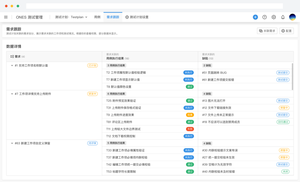 补一句经验:追溯不是一次性工作,它是“把承诺变成资产”的成本。你付出维护成本,换来的是后期影响分析的确定性与决策效率。另外,追溯链维护最怕“各写各的”。像 ONES TestCase 明确支持用例与需求、任务关联,并把测试计划与迭代关联,能把追溯从“Excel表”推进到“过程资产”。