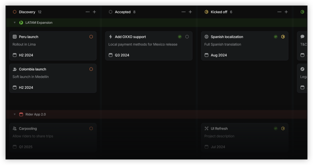 核心功能上,Linear 的核心抓手就是 Cycles:用固定周期把工作切片,形成稳定的迭代节奏;配合 issue 流转、项目/路线图,能让团队维持持续推进的动能感。对新人 PM 来说,它最大的价值是不用先配置一堆流程,也能把流程跑起来。适合小而精、迭代节奏固定、想减少工具摩擦的团队。
