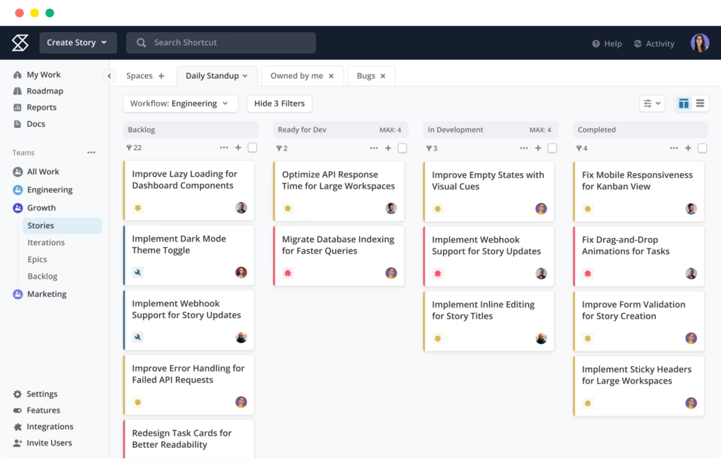 敏捷项目管理能力上,Shortcut 的 Iteration 让你能比较容易地组织 Scrum 的关键动作:迭代开始前做 planning、迭代中推进、迭代结束 review/retro。它的优势是不会像重型系统那样一上来给你大量配置负担;但如果你所在组织需要很强的组合管理、复杂权限与跨项目治理,仍需要评估它的上限。
