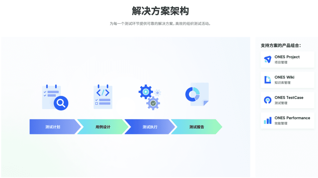 如果你的组织想找的不是一个独立测试系统,而是一套能把需求、项目、测试、缺陷和知识沉淀串起来的测试管理平台,那么 ONES 值得优先评估。ONES TestCase 官方信息显示,它支持测试用例与需求、任务关联,测试计划与迭代关联,未通过用例可快速创建缺陷任务,支持用例库树状组织、自定义属性、权限分组、Excel 导入导出和测试报告模板配置;其方案页还明确强调了结构化用例库、缺陷追踪、测试报告和全流程组织能力。